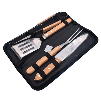 Conjunto de ferramentas de churrasco, 4 unidades, aço inoxidável, com bolsa oxford, uso doméstico, cozinha ferramentas de cozinha, alça de madeira