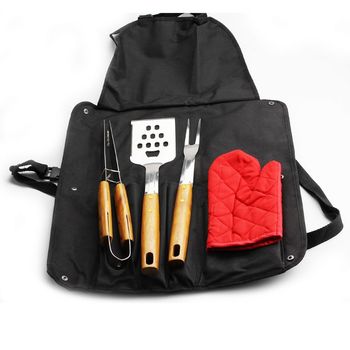 Conjunto de ferramentas de churrasco em aço inoxidável, 4 unidades, com avental, bolsa de churrasco, ferramentas domésticas, utensílio de cozinha